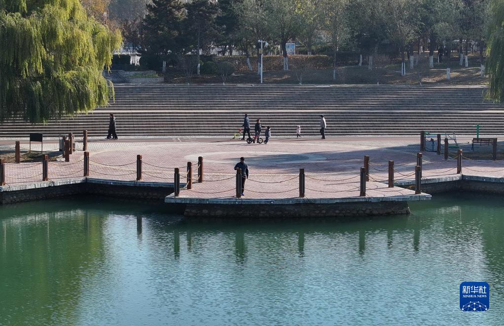 11月26日,市民在唐山市古冶區銀湖公園游玩(無(wú)人機照片)。