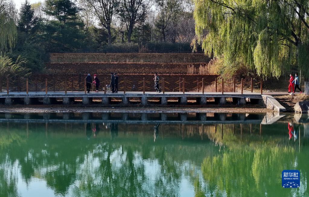 11月26日,市民在唐山市古冶區銀湖公園游玩(無(wú)人機照片)。