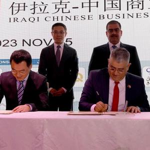 這是11月25日在伊拉克巴格達拍攝的伊拉克-中國商會(huì )成立儀式簽約現場(chǎng)。
