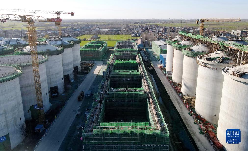 11月26日在河北省唐山市豐潤區拍攝的糧食安全應急儲備及食品深加工全鏈化綜合生產(chǎn)基地項目建設工地(無(wú)人機照片)。