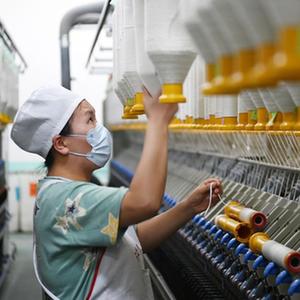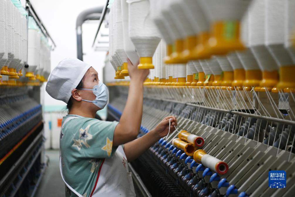 11月26日,在涇川縣一家棉紗生產(chǎn)企業(yè),工人在棉紗生產(chǎn)線(xiàn)上作業(yè)。