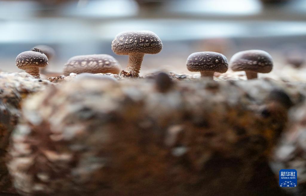 在平山縣食用菌制菌中心的香菇大棚內拍攝的香菇(11月25日攝)。
