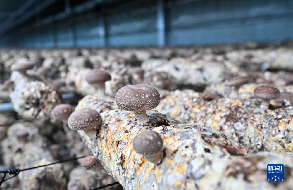 在平山縣食用菌制菌中心的香菇大棚內拍攝的香菇(11月25日攝)。