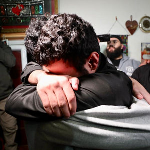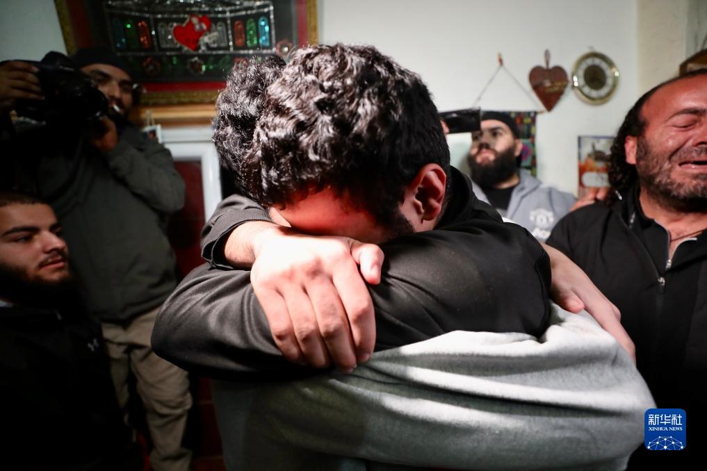 11月26日,一名被關(guān)押的巴勒斯坦人(灰衣者)獲釋后回到耶路撒冷。