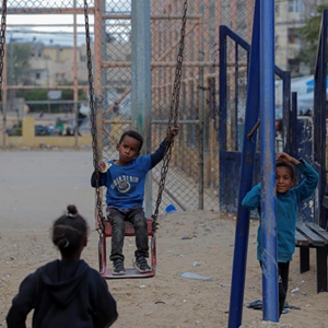 11月27日,孩子們在加沙地帶南部城市拉法一處公園玩耍。