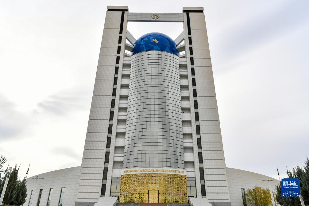 這是11月26日在土庫曼斯坦首都阿什哈巴德拍攝的外交部大樓。