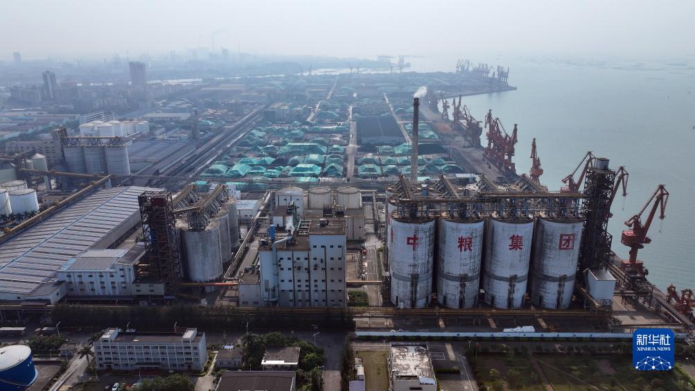 這是廣西欽州港勒溝作業(yè)區中糧集團的裝卸碼頭(11月24日攝,無(wú)人機照片)。
