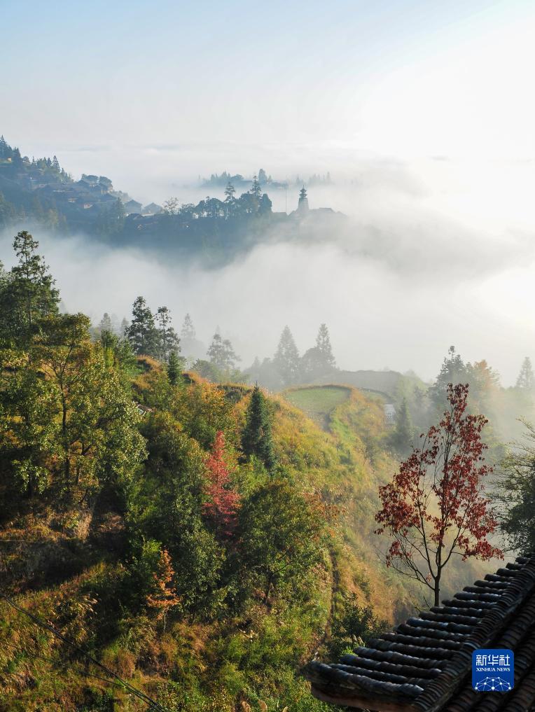 11月28日,貴州省黔東南苗族侗族自治州從江縣高增鄉建華村呈現出云海景觀(guān)。