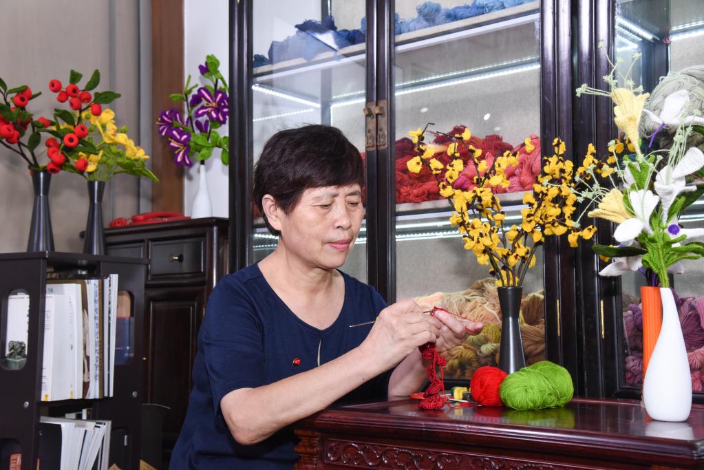 勵阿姨50歲退休才接觸編織絨線(xiàn)花