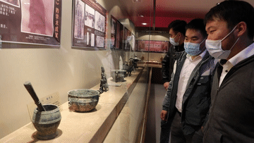 ↑馬文軒(左一)和同學(xué)參觀(guān)校內的醫史博物館。