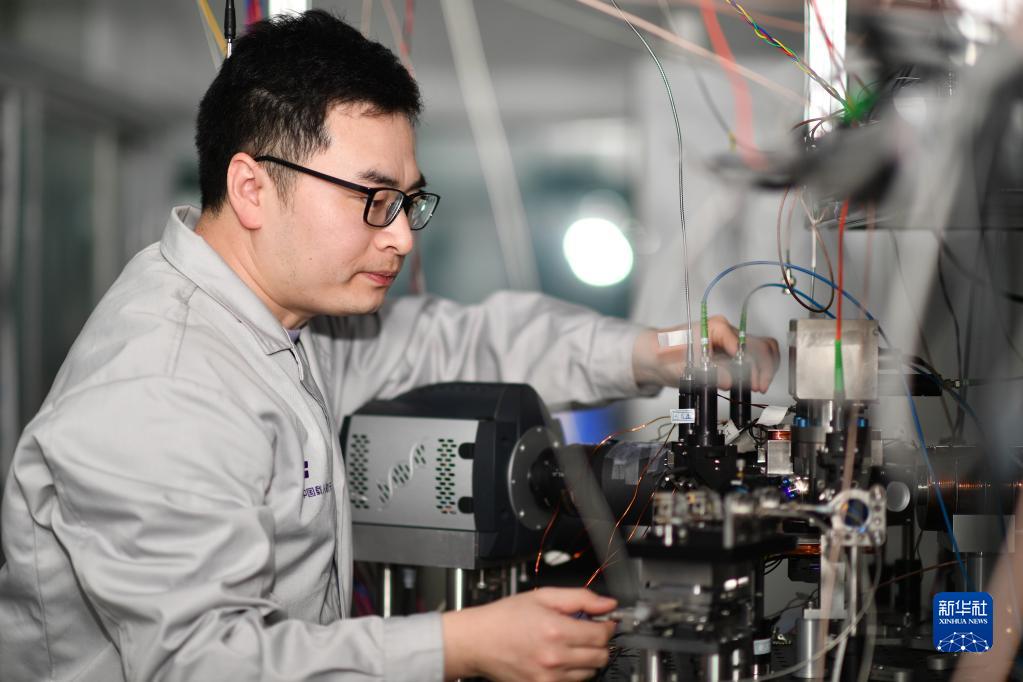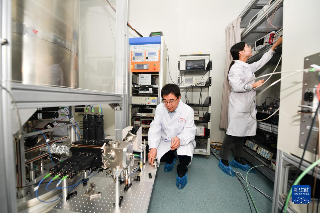 2月8日,科研人員在中國科學(xué)院國家授時(shí)中心空間鍶原子光鐘實(shí)驗室工作。新華社記者 張博文 攝