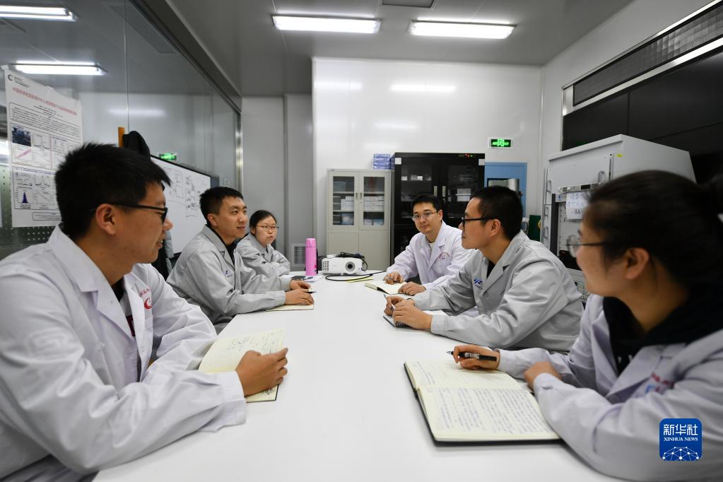 2月7日,科研人員在中國科學(xué)院國家授時(shí)中心空間鍶原子光鐘實(shí)驗室討論項目進(jìn)度。新華社記者 張博文 攝