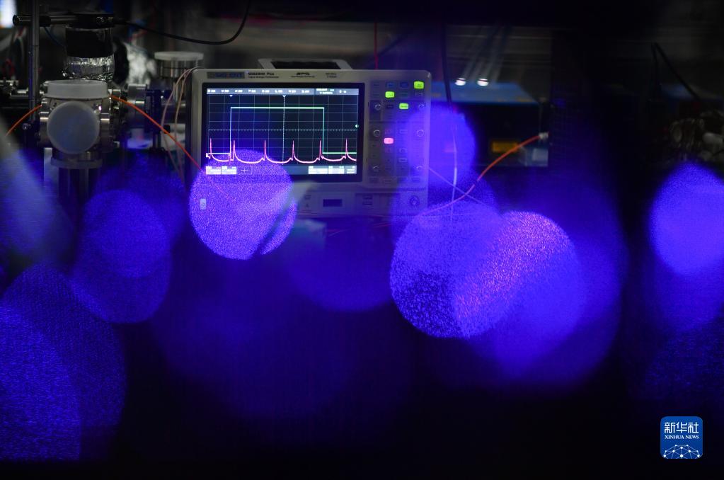 2月7日,在中國科學(xué)院國家授時(shí)中心空間鍶原子光鐘實(shí)驗室,測量?jì)x器顯示相關(guān)實(shí)驗信號。新華社記者 張博文 攝