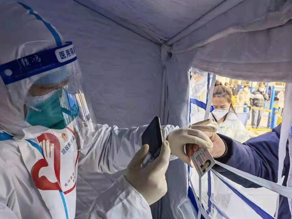 2月20日,內蒙古包頭市疫情防控志愿者為做核酸檢測的居民錄入信息。(受訪(fǎng)者供圖)