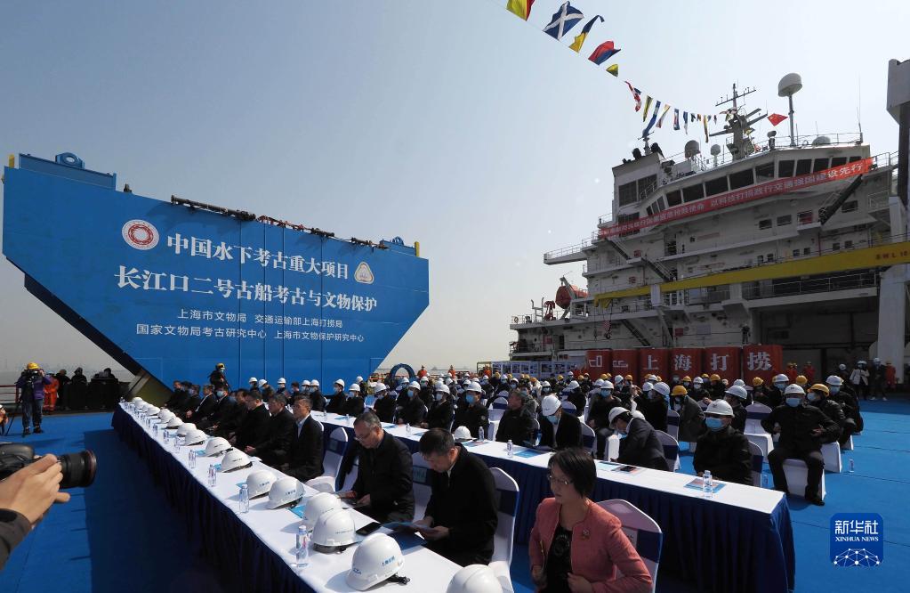 3月2日,“長(cháng)江口二號”古船打撈啟動(dòng)儀式在上海外高橋碼頭舉行。新華社記者 任瓏 攝