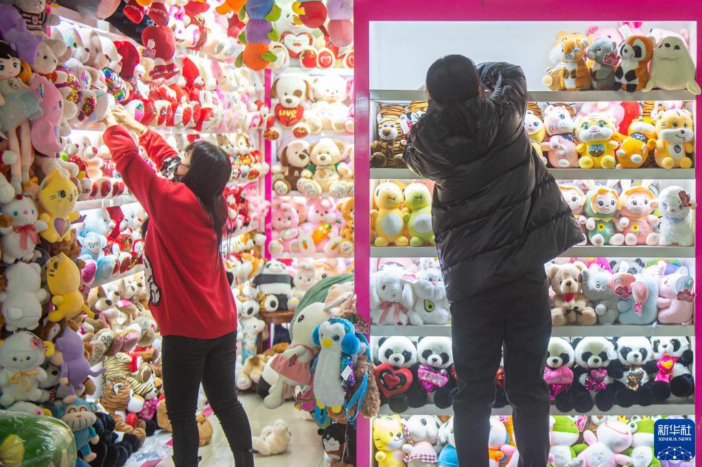 義烏市中國小商品城經(jīng)過(guò)春節假期的休整后重新開(kāi)市營(yíng)業(yè),這是經(jīng)營(yíng)戶(hù)整理貨架(2月12日攝)。新華社記者 江漢 攝