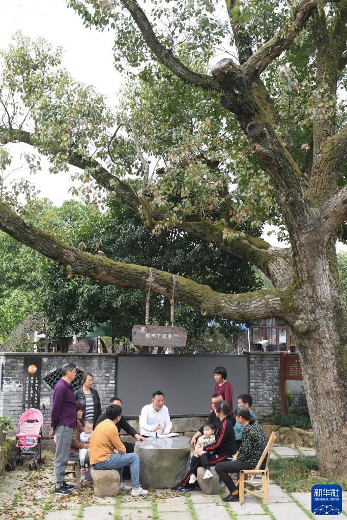 3月14日,杭州市余杭區小古城村一株老樟樹(shù)下,村民在商議鄉村發(fā)展事項。新華社記者 翁忻旸 攝