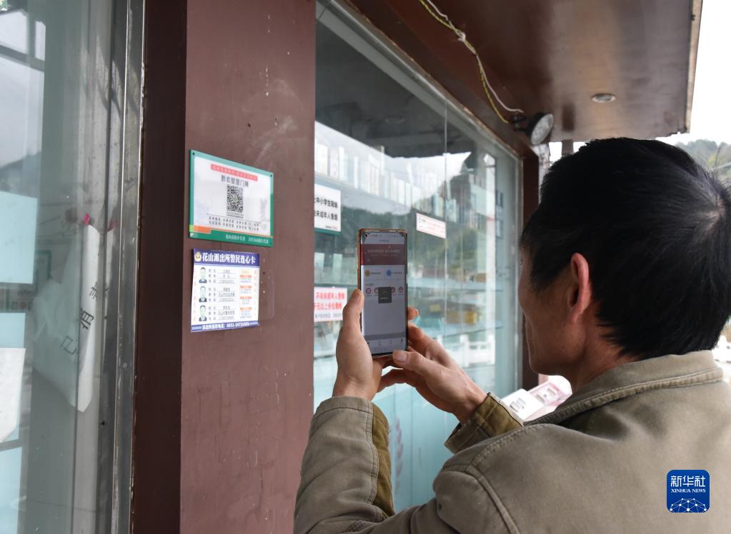 貴州余慶縣花山苗族鄉花山村村民魏廷福展示用手機掃碼“黔農智慧門(mén)牌”進(jìn)入到相應的政務(wù)服務(wù)頁(yè)面(2月18日攝)。新華社記者 李凡 攝