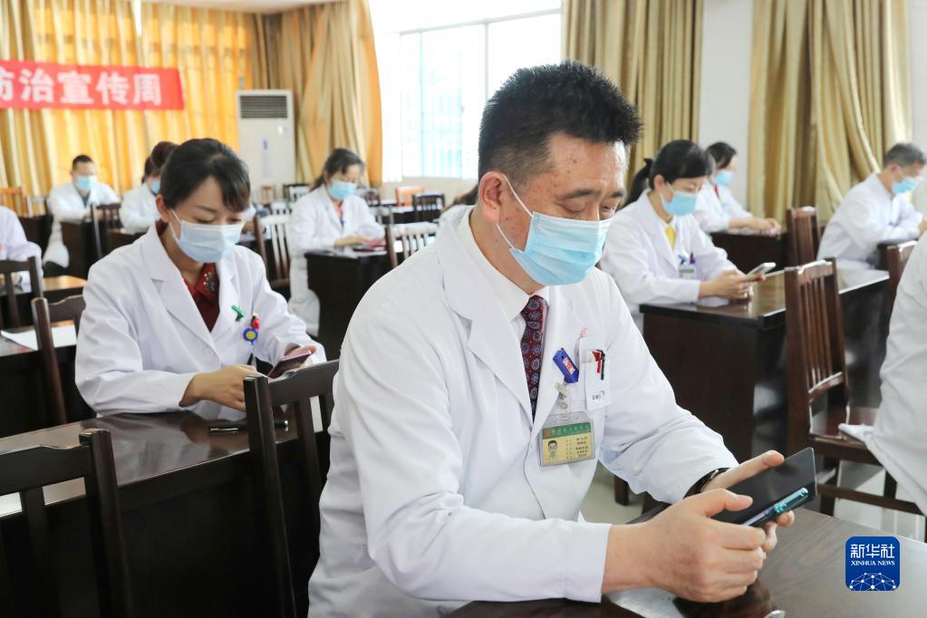 專(zhuān)家團隊在貴州省人民醫院遠程會(huì )診中心與全省34家醫聯(lián)體醫院進(jìn)行“疫情之下,共話(huà)抗癌防癌”的討論(2020年4月16日攝)。新華社記者 歐東衢 攝