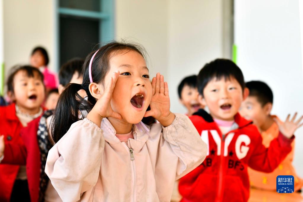 在山東省菏澤市東明縣尚莊社區幼兒園,小朋友在學(xué)唱兒歌(2021年10月12日攝)。新華社記者 郭緒雷攝