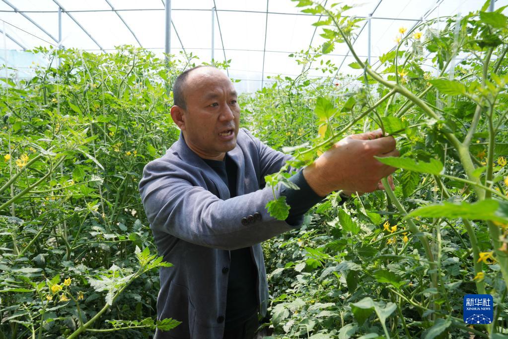 山東省濟南市長(cháng)清區孝里街道居民王守華利用流轉土地建起大棚,發(fā)展高效農業(yè)(4月8日攝)。新華社記者朱崢攝