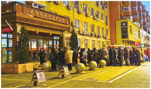 天剛剛泛藍,路燈還亮著(zhù),一棟類(lèi)似普通居民樓的樓門(mén)前已經(jīng)排了30多人。他們穿著(zhù)羽絨服,戴著(zhù)大棉帽,大門(mén)上方“沈陽(yáng)市沈河區中醫院”幾個(gè)大字格外醒目……王蒲寧在朋友圈發(fā)的這張圖片,引來(lái)上百個(gè)點(diǎn)贊。