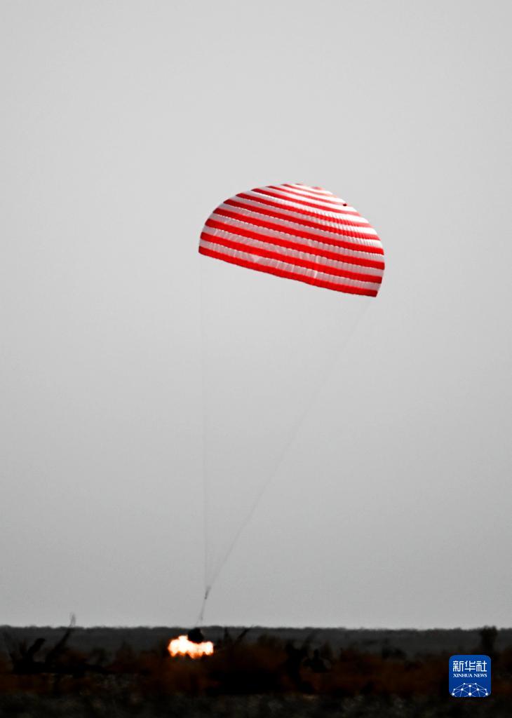 隨后,北京飛行控制中心大屏幕上顯示,紅白相間的主降落傘迅速打開(kāi),牽引著(zhù)神舟飛船在東風(fēng)著(zhù)陸場(chǎng)的上空緩緩垂落。