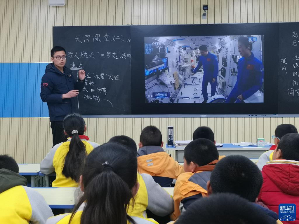 3月23日,唐信與陜西省合陽(yáng)縣坊鎮中心小學(xué)的學(xué)生一起觀(guān)摩“天宮課堂”。新華社發(fā)(受訪(fǎng)者供圖)