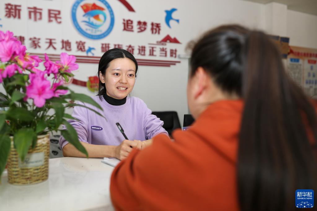 5月1日,西部計劃志愿者車(chē)佳桃(左)在貴州省銅仁市玉屏侗族自治縣新店鎮丙溪村活動(dòng)室接待村民咨詢(xún)產(chǎn)業(yè)發(fā)展問(wèn)題。新華社發(fā)(胡攀學(xué) 攝)