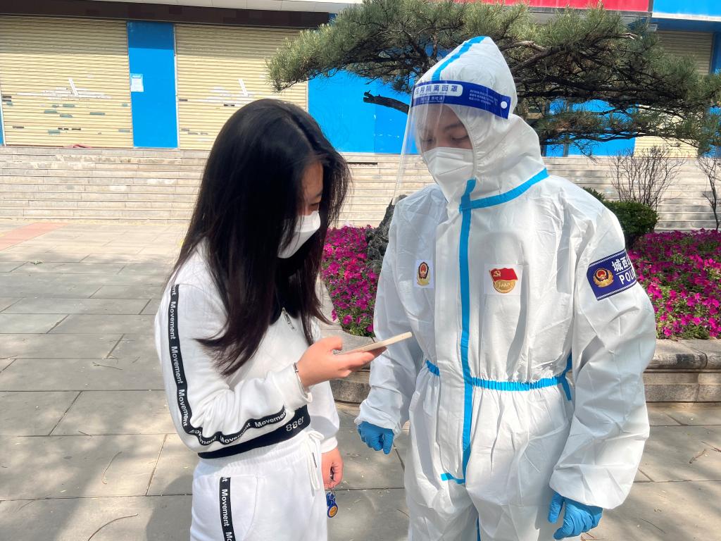 平日里熙熙攘攘的主干道,此刻一片寂靜?!败?chē)輛不能通行,請您理解配合?!薄按笫?,您要去哪里?”“麻煩來(lái)這里登記一下信息?!薄蛞咔槲茨艿叫5摹?0后”警校學(xué)員張鴻杰,主動(dòng)化身“大白”,正協(xié)助城西區五四大街派出所民警維護核酸檢測點(diǎn)秩序和轄區內的日常巡邏。