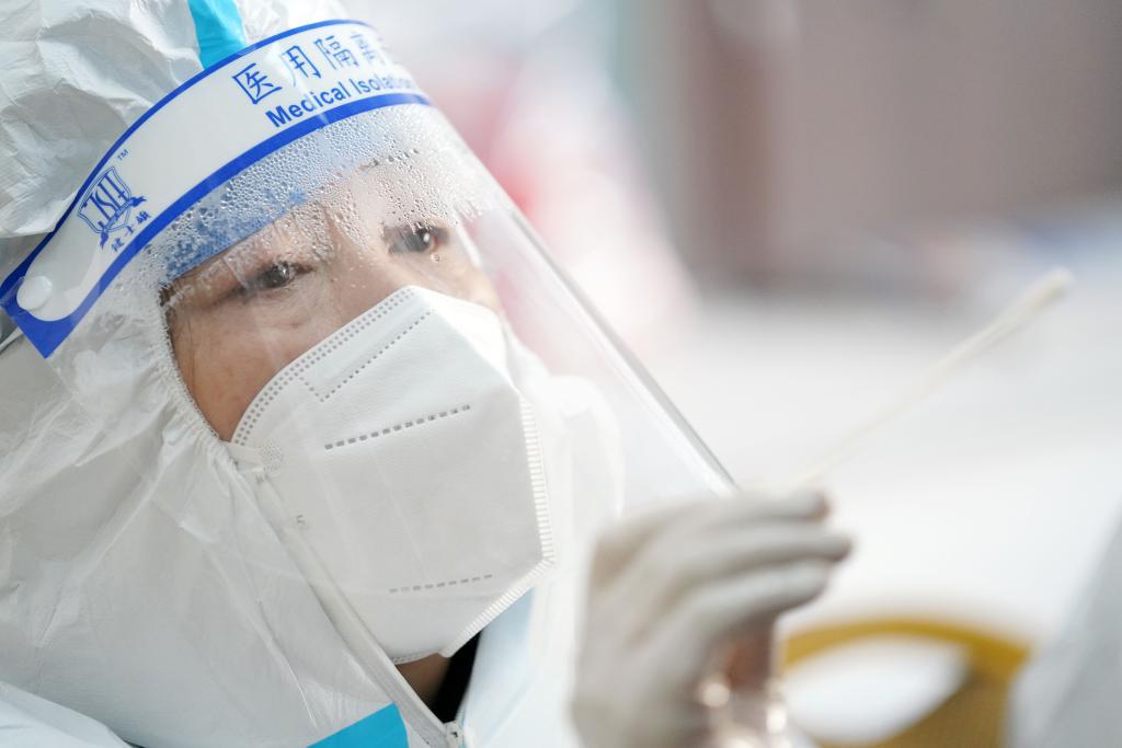 3月26日,在哈爾濱市香坊區一核酸檢測點(diǎn),醫務(wù)人員為市民進(jìn)行核酸采樣。新華社記者王建威 攝