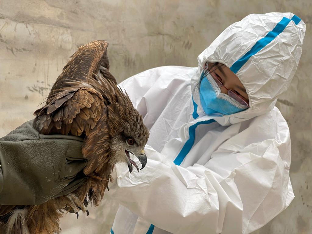 工作人員對黑耳鳶進(jìn)行救治。新華社記者郭剛 攝