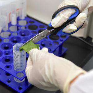 在江西省南昌市東湖區賢士花園農貿市場(chǎng)食品安全快速檢測室,工作人員對市民送檢的蔬菜進(jìn)行取樣。新華社記者彭昭之 攝