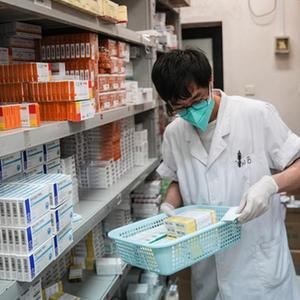 5月22日,在北京市豐臺區盧溝橋社區衛生服務(wù)中心,工作人員在為患者配藥。(新華社記者彭子洋 攝)