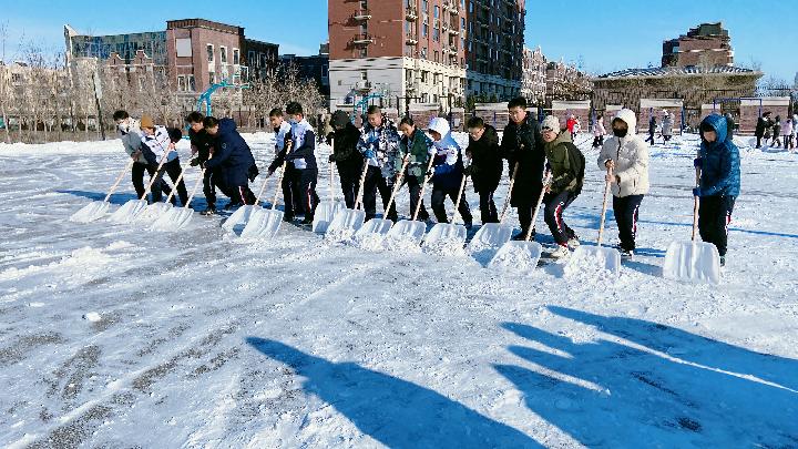 長(cháng)春新區吉大尚德學(xué)校學(xué)生參與掃雪勞動(dòng)。受訪(fǎng)對象供圖