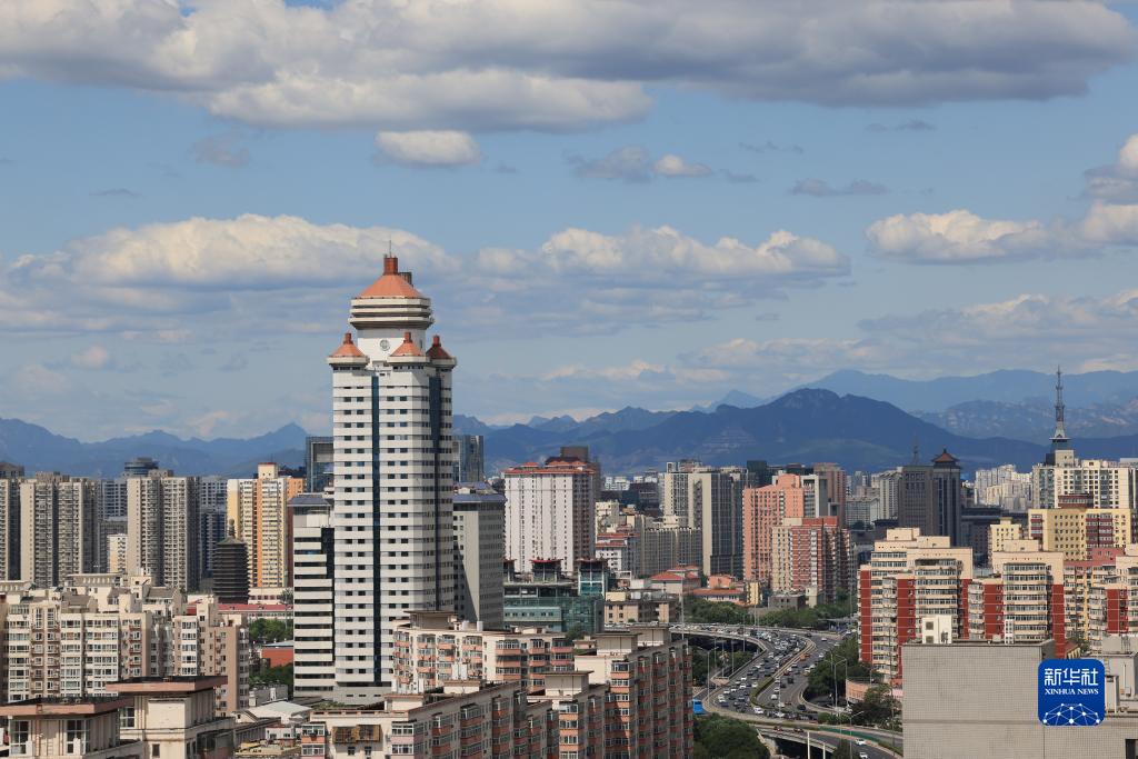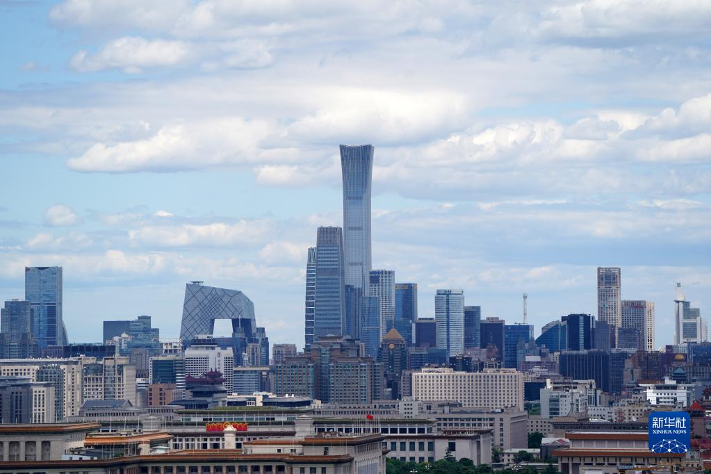 6月6日拍攝的藍天白云下的北京CBD建筑群。新華社記者 陳曄華 攝