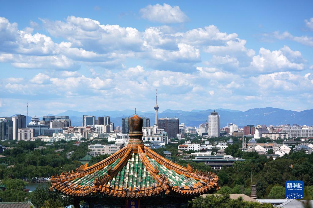在景山公園拍攝的藍天白云下的北京城市風(fēng)光(2020年5月26日攝)。新華社記者 鞠煥宗 攝
