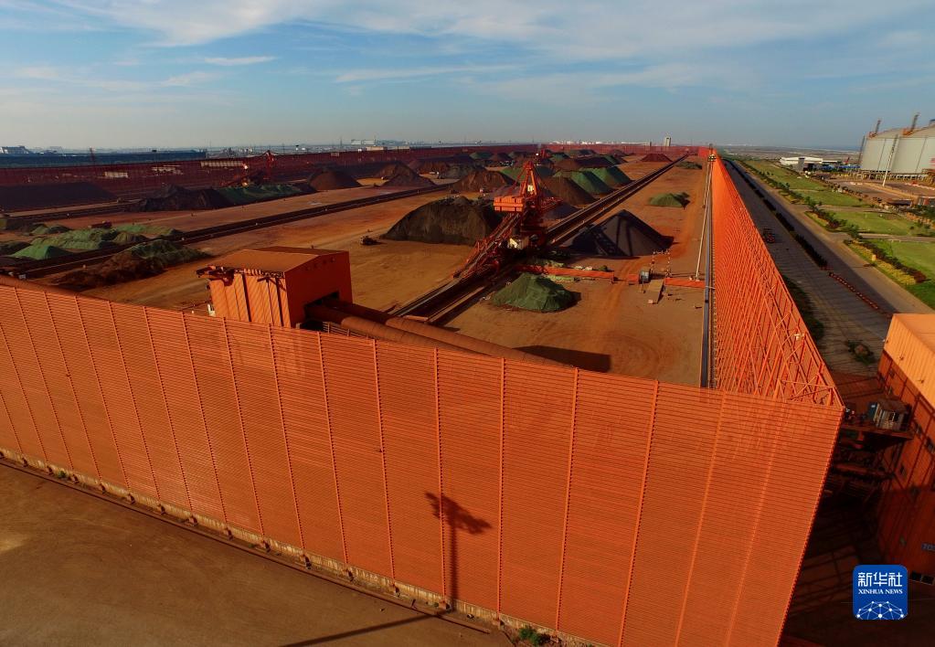 這是河北港口集團唐山港曹妃甸口岸一處裝有防風(fēng)網(wǎng)的礦石堆場(chǎng)(2015年7月9日攝)。新華社記者 楊世堯 攝
