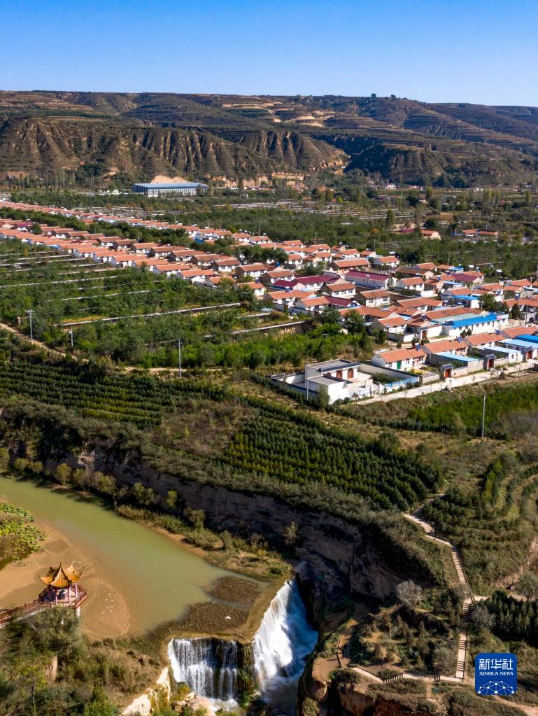 流經(jīng)寧夏固原市彭陽(yáng)縣城陽(yáng)鄉的茹河,因地殼變化和河床運動(dòng)形成旱塬上的瀑布,當地以此發(fā)展鄉村旅游(2019年10月12日攝,無(wú)人機照片)。新華社記者 馮開(kāi)華 攝
