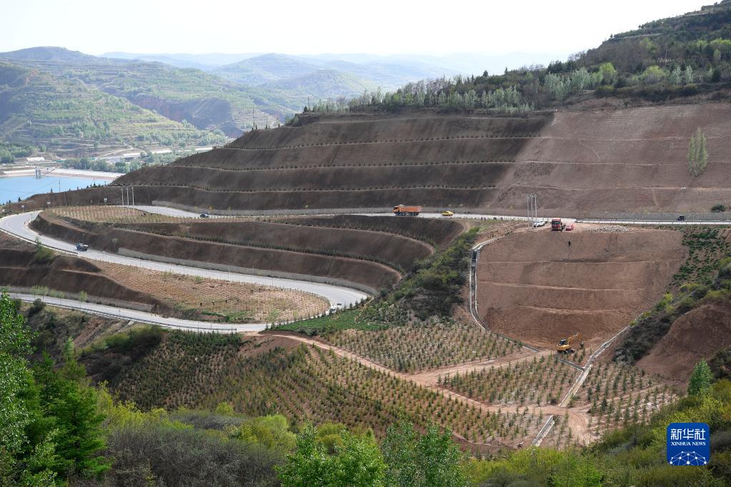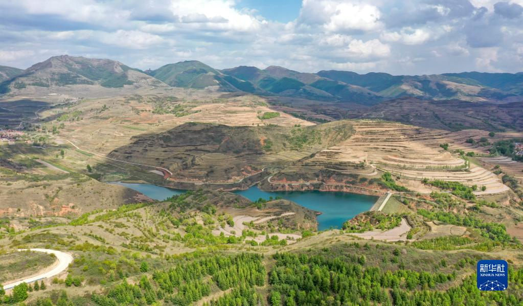 寧夏固原隆德縣北象山歷史遺留廢棄礦山修復工程(5月11日攝,無(wú)人機照片)。新華社記者 王鵬 攝