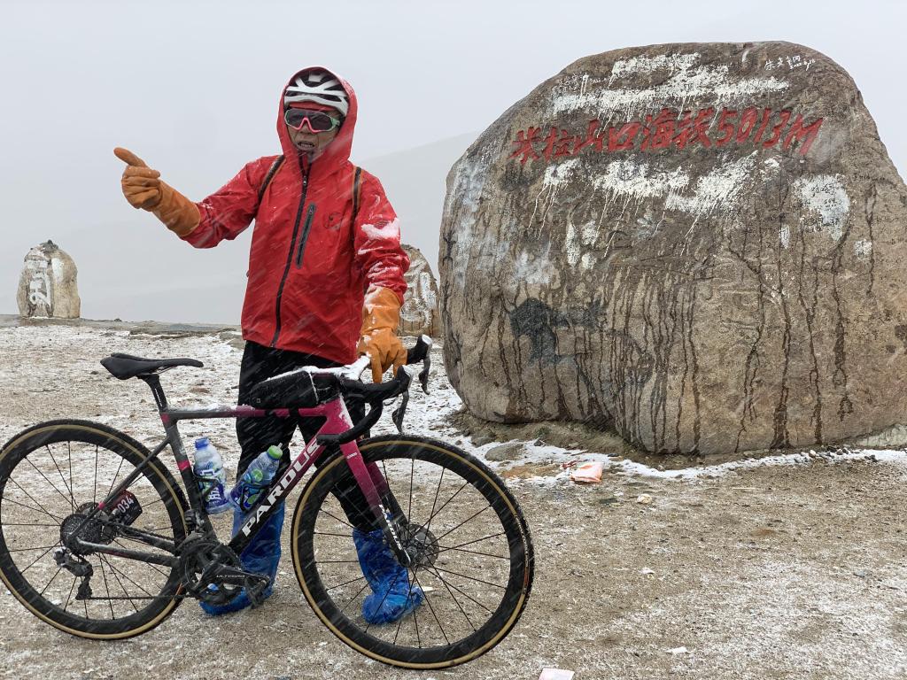 (參賽選手鄒建生在海拔5013米的米拉山口留影)