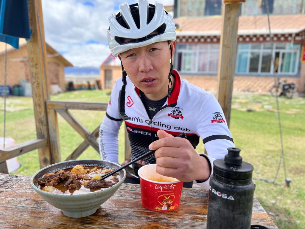 (沿途藏餐館的老板熱情地在騎手程峰碗里多放肉)