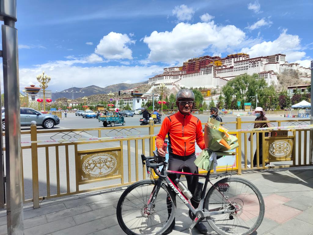 (張敬忠在位于布達拉宮腳下的終點(diǎn)留影)