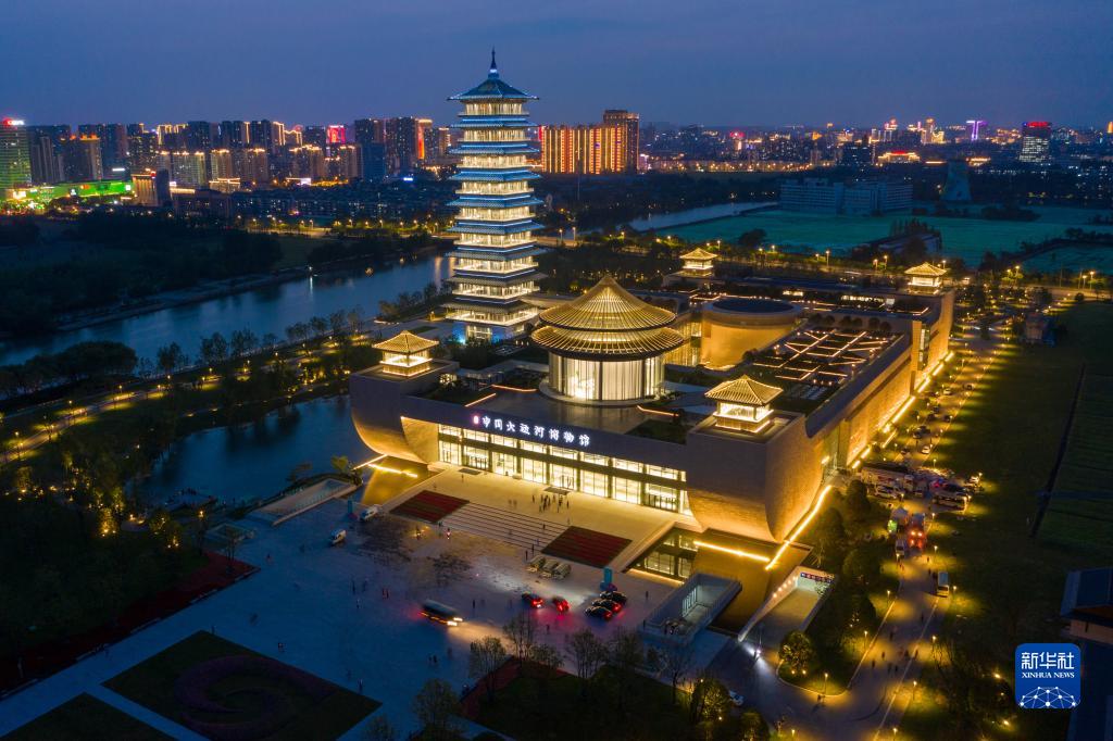 這是在江蘇省揚州市拍攝的中國大運河博物館夜景(2021年6月15日攝,無(wú)人機照片)。新華社記者 李博 攝