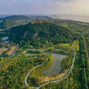 這是江蘇省南通市狼山國家森林公園沿江景色(2021年10月25日攝,無(wú)人機照片)。新華社記者 李博 攝