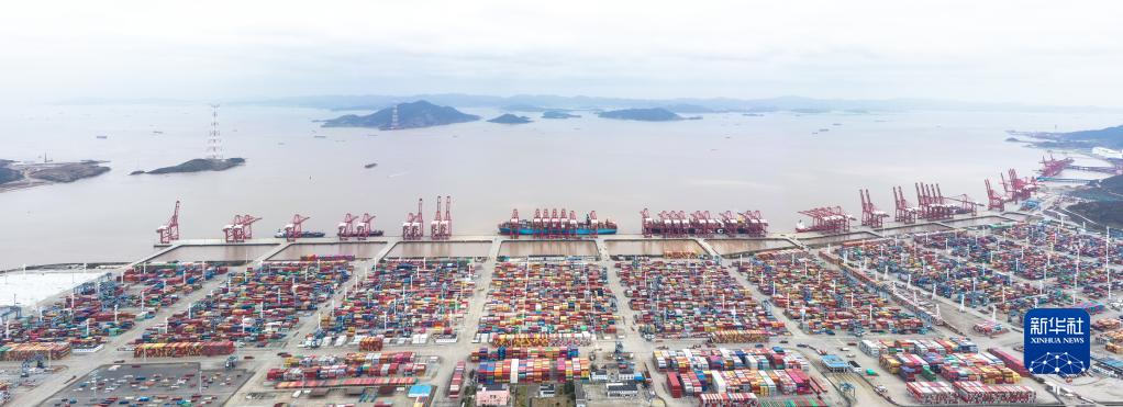浙江寧波舟山港穿山港區(2021年3月3日攝,無(wú)人機照片)。新華社記者 翁忻旸 攝