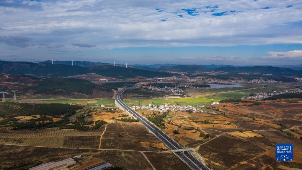 這是2021年通車(chē)的云南三清高速一景(2022年1月15日攝,無(wú)人機照片)。新華社記者 胡超 攝