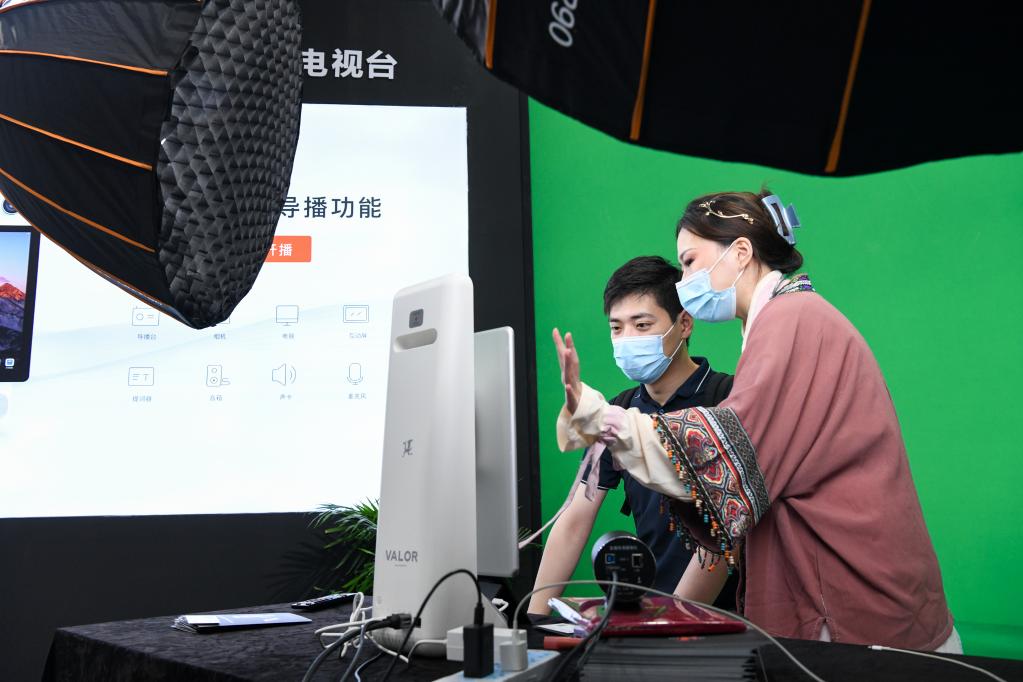 8月16日,在第十屆中國電子信息博覽會(huì )上,觀(guān)眾在體驗智能直播設備。新華社記者 梁旭 攝