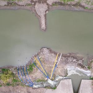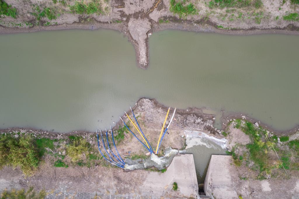 湖南省常德市安鄉縣三岔河鎮的一處提水作業(yè)點(diǎn)(無(wú)人機照片)。新華社記者 陳思汗攝