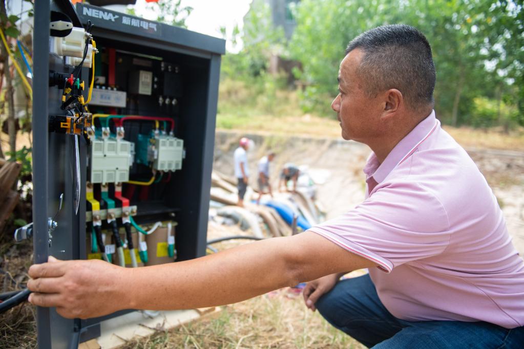 周剛在羅洲電排檢查配電箱。新華社記者 陳思汗攝